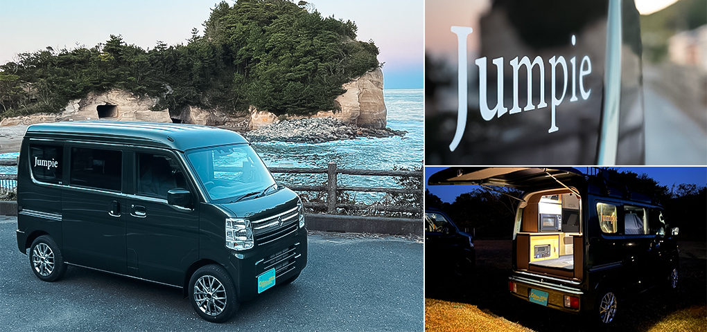 カリスマジャパンの想いをカタチにしたのが、オリジナル軽キャンピングカー『Jumpie』&『TINY』。「旅先にもうひとつのリビングを」というクルマだからこそ可能なライフスタイルをコンセプトに、快適に寝泊まりできることはもちろん、さまざまなオプションやDIYで、自分だけのヒミツ基地を作るようにアレンジできる「旅ぐるま」を作りました。